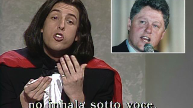 Using witty lyrics with mock-Italian touches, Sandler (shown here in his old, Clinton-skewering days) was at his best. He: