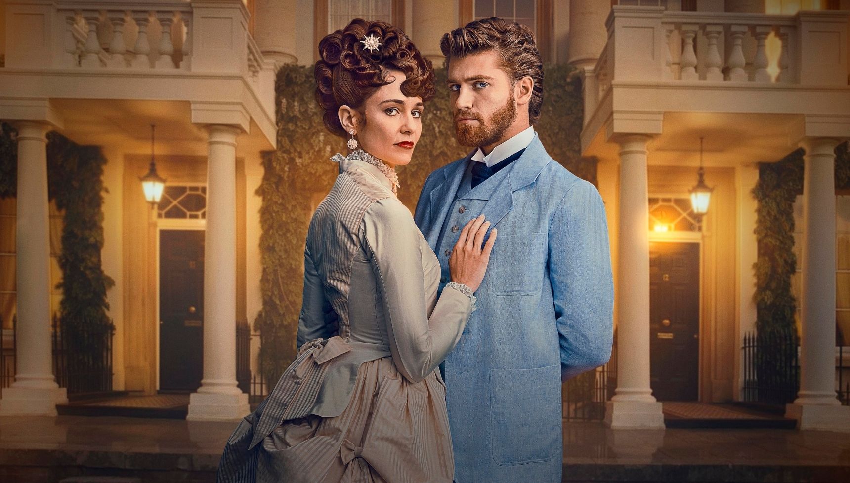 But this version has a stronger emphasis on women. There’s Ann (Francesca Annis, a frequent PBS star), the widowed matriarch. There’s Jo’s wife (shown here with Jo) and step-daughter. There’s a woman from Jo’s past, another in Soames’ future.